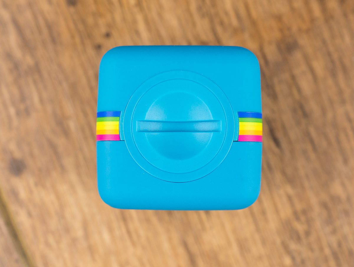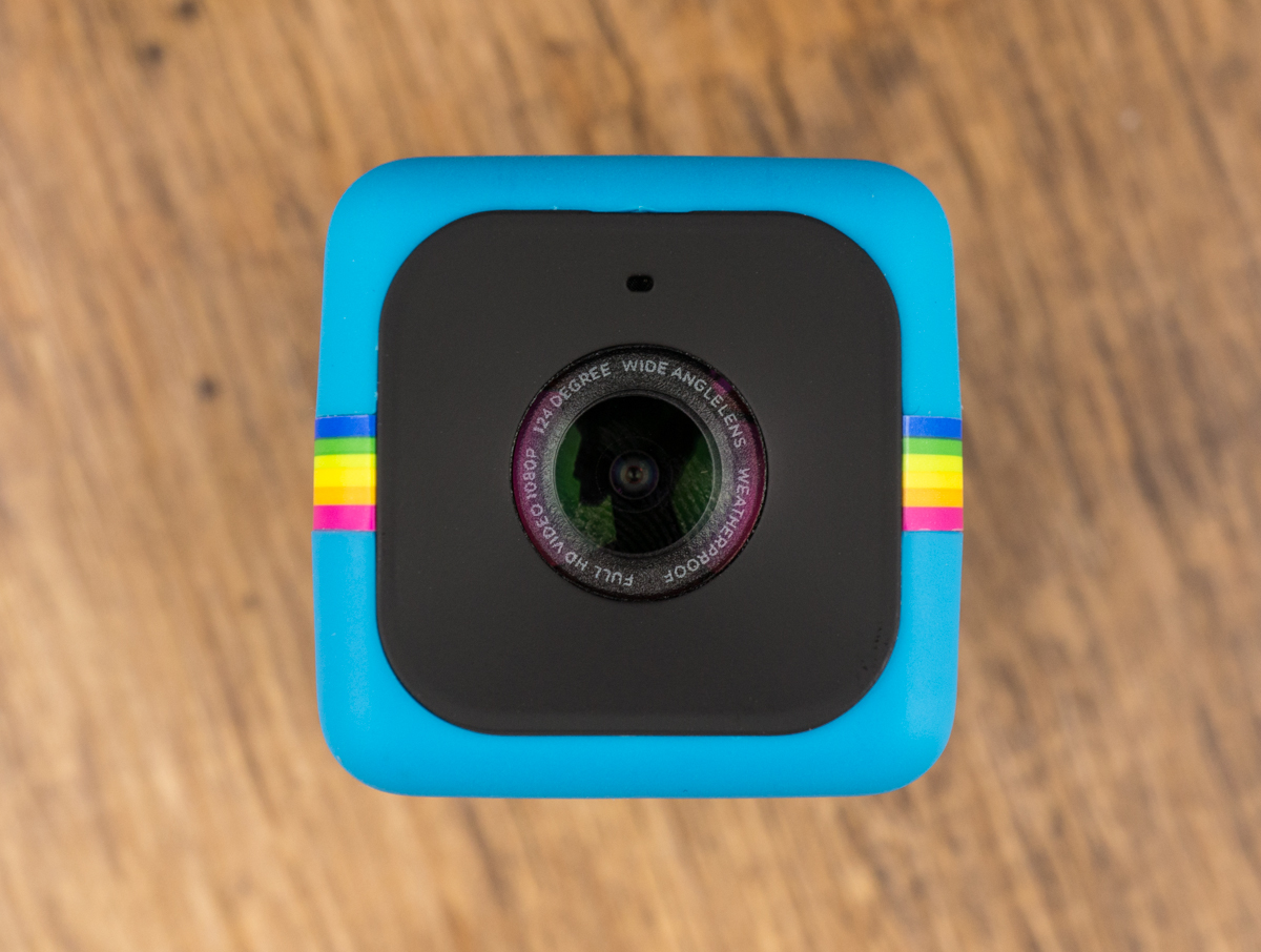 Внешний вид Polaroid Cube соответствует названию: это кубик с ребром 38 мм и весом 45 граммов. Передняя сторона, на которой объектив и микрофон, напоминает логотип Instagram. В оригинале он — бежево-коричневый, Polaroid же раскрасил своё детище в несколько цветов на выбор: в голубой, красный или чёрный. На тесте побывала голубая версия.