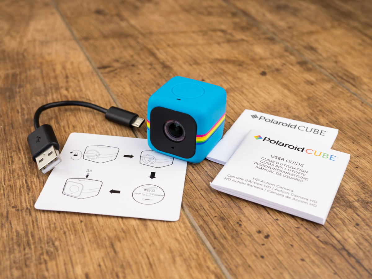 В квадратную коробочку Polaroid Cube создатели девайса положили гарантийный талон, книжечку-инструкцию и крохотный кабель USB<=>micro-USB.
