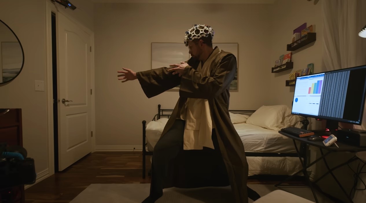 Àâòîð YouTube-êàíàëà Basically Homeless íàó÷èëñÿ óïðàâëÿòü íåêîòîðîé ýëåêòðîíèêîé ñèëîé ìûñëè. Äëÿ ýòîãî îí ñîçäàë ñïåöèàëüíûé øëåì, îñíîâàííûé íà ãàðíèòóðå OpenBCI (îíà èçìåðÿåò ìîçãîâûå èìïóëüñû), à òàêæå ÏÎ äëÿ óïðàâëåíèÿ ñâåòîì è îòêðûòèåì äâåðè.